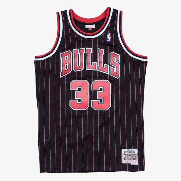 DescriptionCelebrate the legacy of Scottie Pippen by grabbing this Chicago Bulls 1995/96 Hardwood Classics Swingman player jersey. This Mitchell & Ness jersey features throwback Chicago Bulls graphics, which mirrors what the team wore during that time. This jersey will be an immediate enhancement to your game day wardrobe.